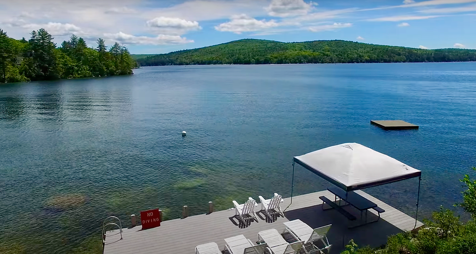 Seasonal weekly rental located on crystal clear Merrymeeting Lake in New Durham, NH. Sleeps 6 comfortably. Includes a private deep water dock, high speed WiFi, 50 Inch TV with Roku, and air conditioning.